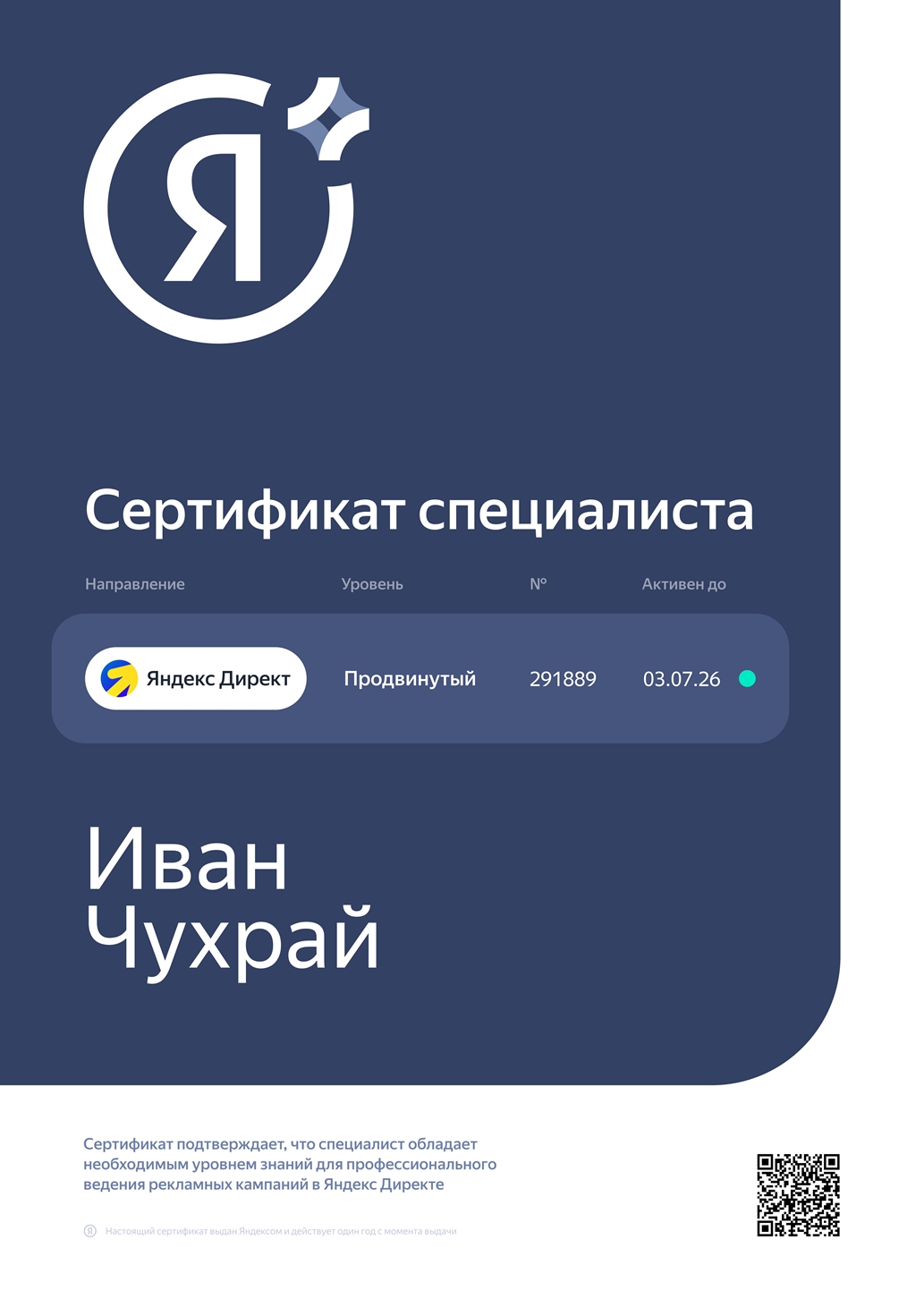 Сертификат специалиста Яндекс.Директ. Продвинутый
