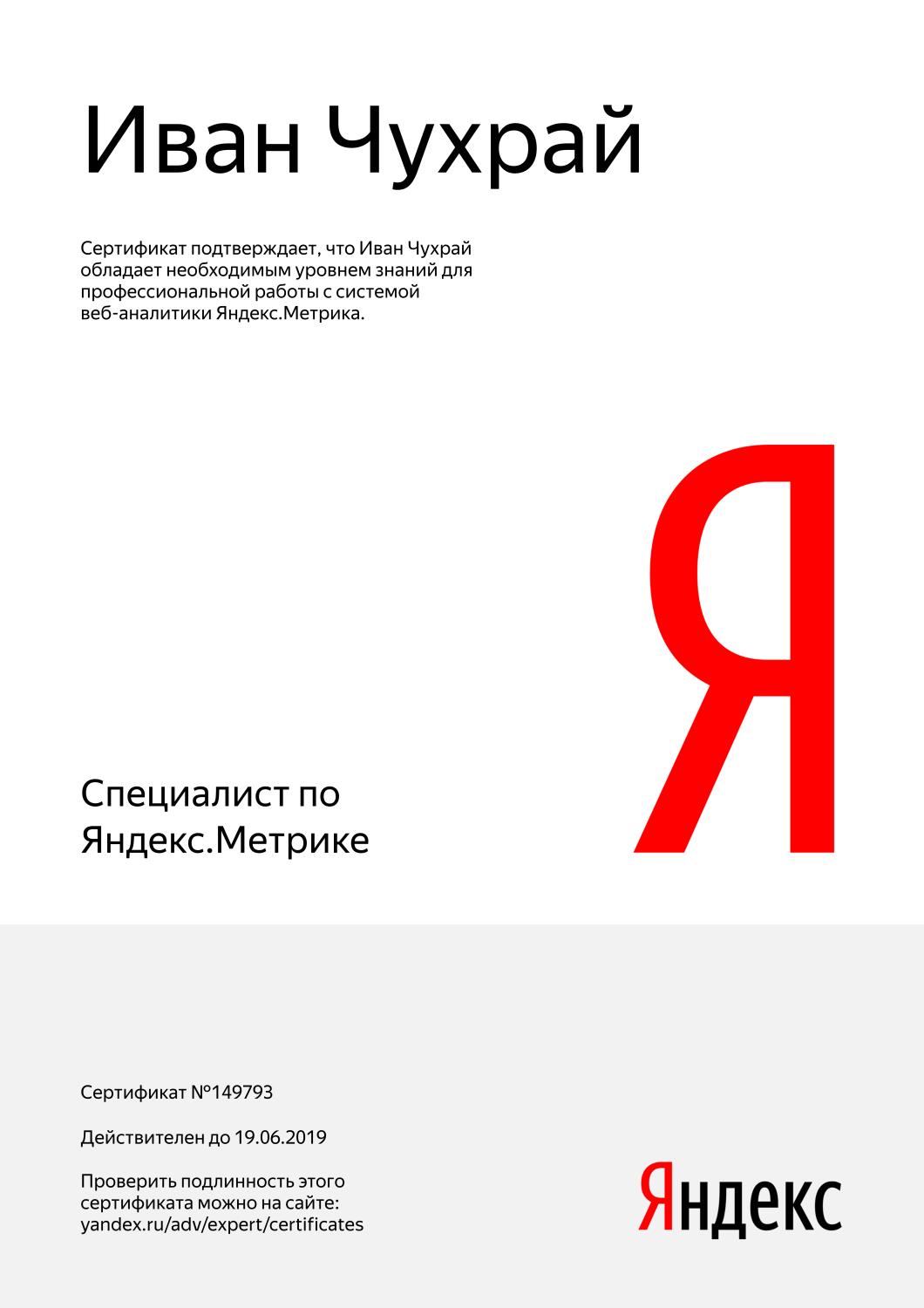 Сертификат специалиста по Яндекс.Метрике