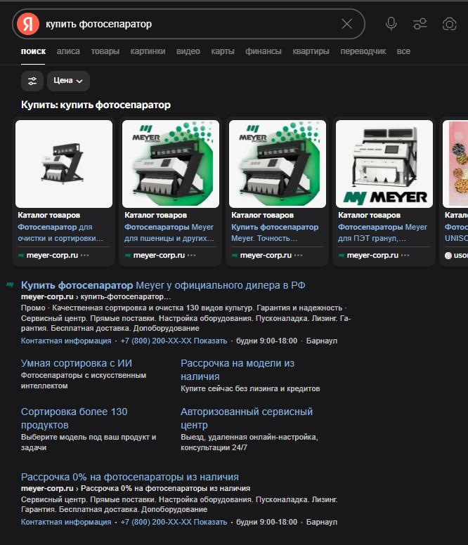Проект по запуску контекстной рекламы для компании с промышленным оборудованием.